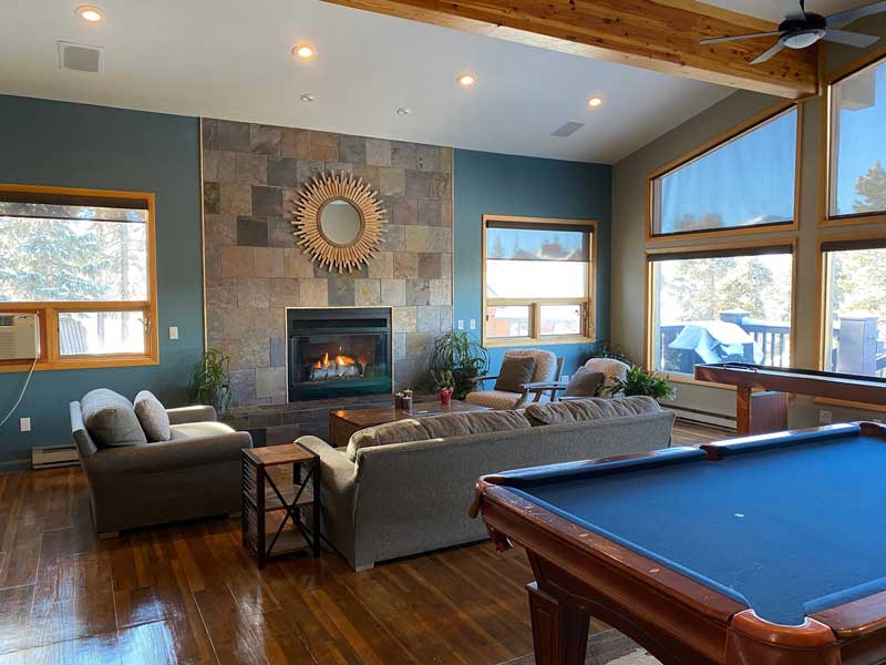 Each room offers a unique view, allowing guests to immerse themselves in the natural beauty of the Rocky Mountains. The rustic decor enhances the warm and inviting feel. Relax in the spacious common areas with friends and family after a day of adventure.