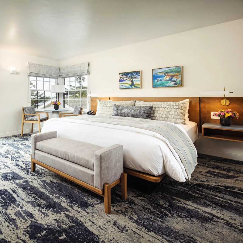 The hotel is nestled in the heart of Carmel, just steps from charming shops and lovely beaches. Relax in tastefully designed spaces that offer comfort and style. Enjoy the calming atmosphere perfect for a romantic getaway or a peaceful retreat.
