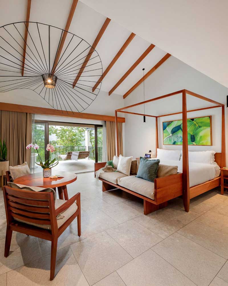 In your room, you’ll find a tropical aesthetic that brings the outside in, enhancing the relaxation vibe. Each room comes equipped with comfortable amenities.