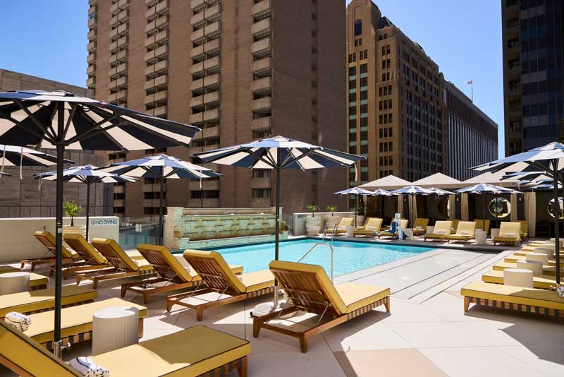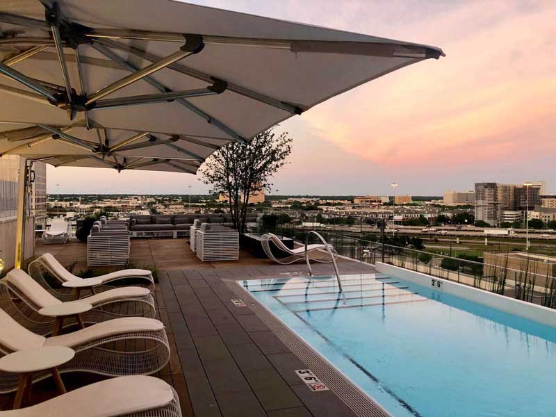 The hotel features a rooftop terrace where you can soak in stunning views of the Dallas skyline. It’s a fantastic spot to mingle with friends while enjoying cocktails and light bites.