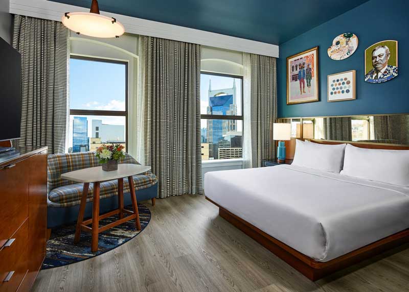 Inside the hotel, expect to see stylish decor that reflects the local culture. The rooms are thoughtfully designed, ensuring a cozy and chic atmosphere for guests. You can enjoy innovative dining options and rooftop views that capture the essence of Nashville.