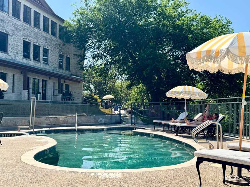 The outdoor pool offers a place to relax, perfect for those warm Texas days. Enjoy lounging by the pool or explore the surrounding area of Fredericksburg.