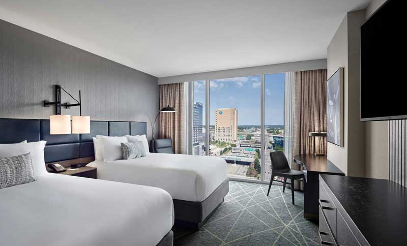 Loews Kansas City Hotel offers a modern and sophisticated stay near the Crossroads District, famous for its arts and culture. The contemporary design of the hotel enhances your experience.