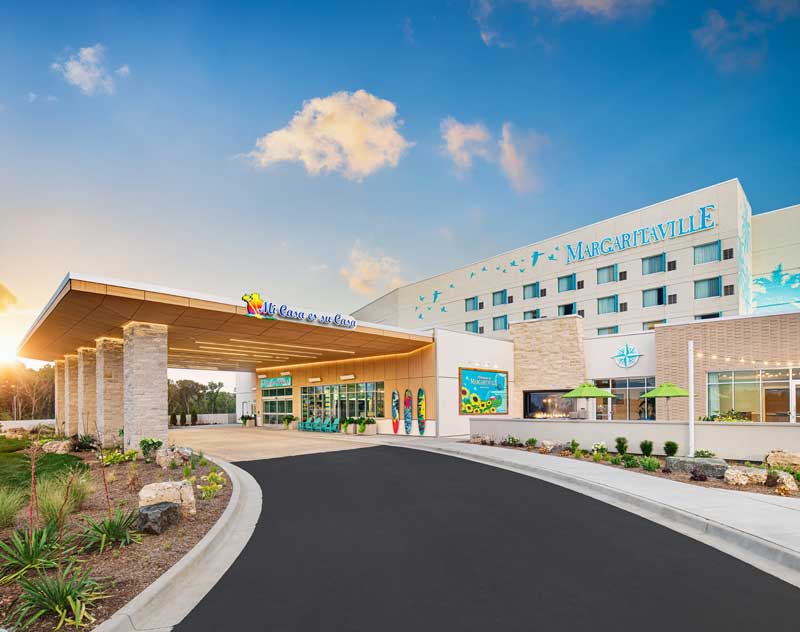 Visit Margaritaville Hotel for a fun tropical getaway right in Kansas City! This vibrant hotel features a lively atmosphere that is perfect for families and leisure travelers alike. The decor is bright and cheerful, inspired by the beach and island vibes.
