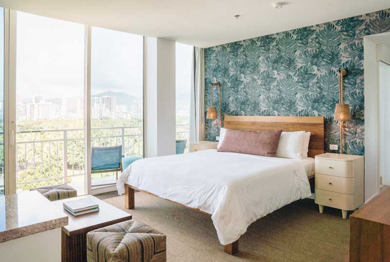 Kaimana Beach Hotel offers a quieter experience slightly away from the hustle of Waikiki. Enjoy a modern boho vibe and a private beach for relaxation.